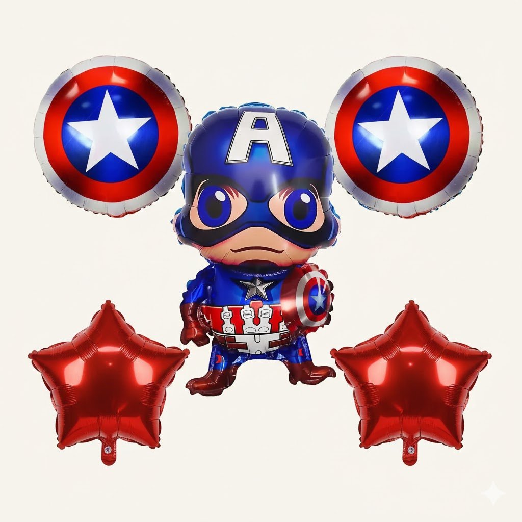 5-piece captain america superhero balloon set – with metallic red stars